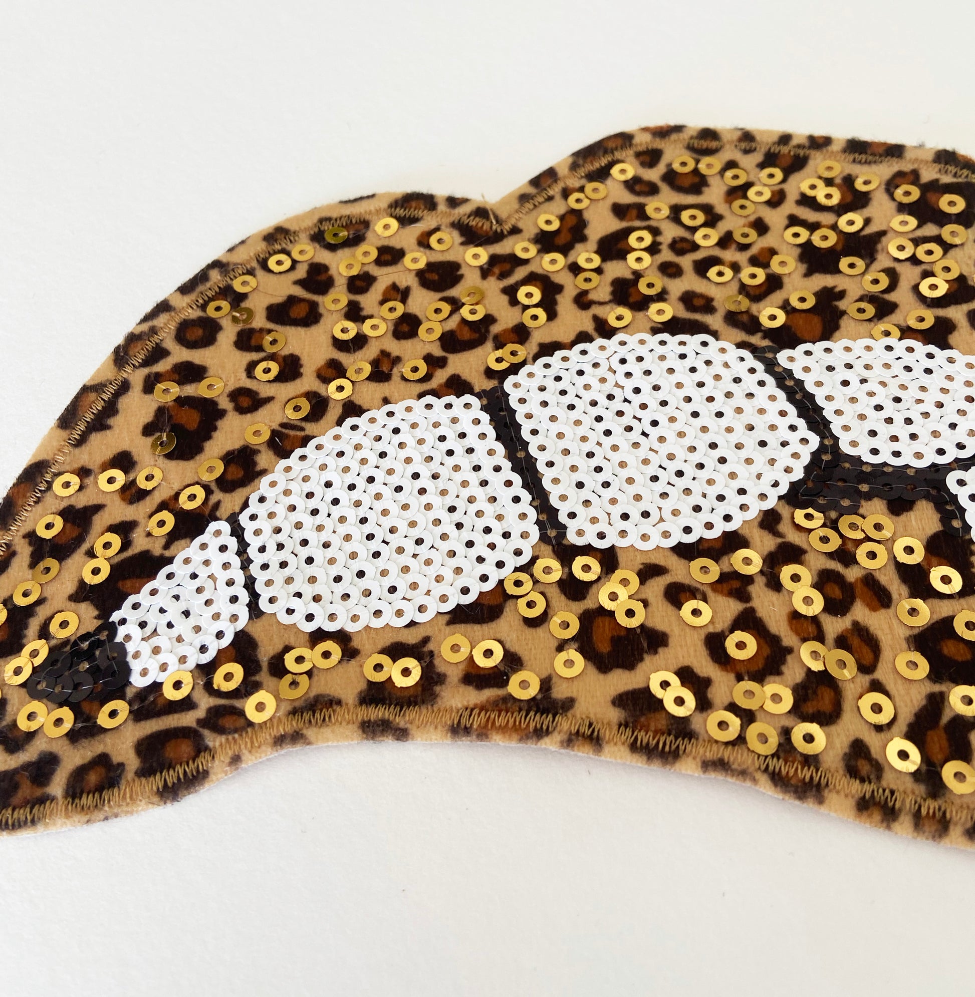 This Kinked DIY Leopard lips Motif is a soft sew on patch. The base fabric is a short fur and it is adorned with sequins.
